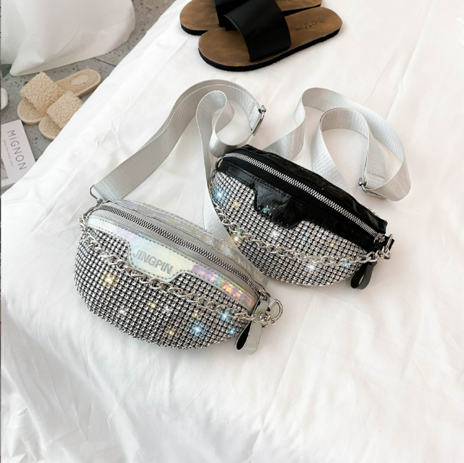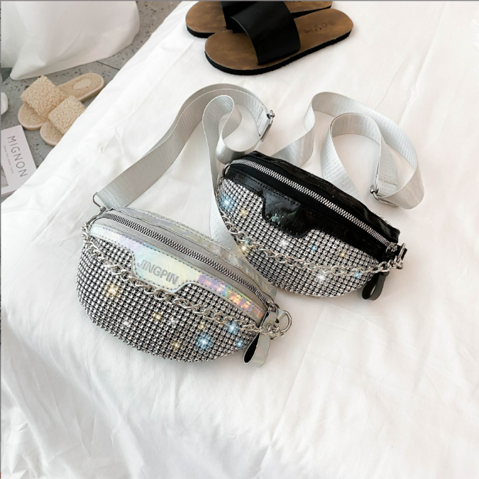2025 nuevo estilo bolso cruzado para mujer bolso cruzado de un solo hombro con ribete de purpurina diseño de cintura delgada bolso de pecho para mujer