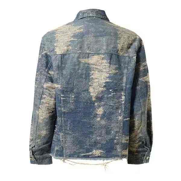 2025 Nueva chaqueta vaquera transpirable con estilo, chaqueta desgastada personalizada para hombres, nueva chaqueta vaquera informal de alta calidad