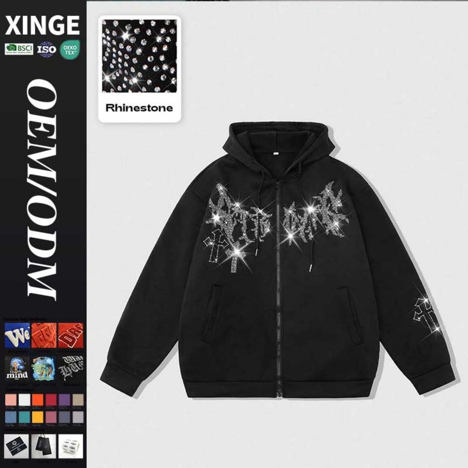Número de Modelo:CUS250826-Men's Cross Graphic Rhinestone Hoodie