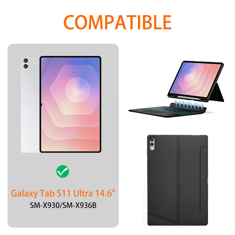 Nuevo Estuche con Teclado Inalámbrico BT 2025 con Panel Táctil y 7 Luces de Fondo RGB para Samsung Galaxy Tab S11 Ultra 14.6 Pulgadas