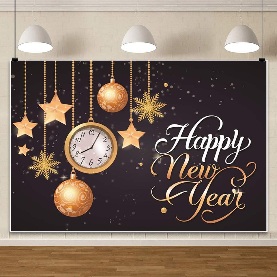 2025 Año Nuevo cuenta regresiva 15x8ft Feliz Año Nuevo telón de fondo bola dorada pentagrama decoraciones negro fotografía Fondo Ramadán