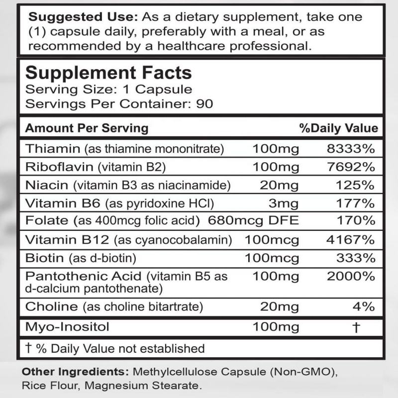 2025 OEM Super B Complex Cápsula Vitamina B1 B2 B6 B12 Suplemento de ácido fólico para hombres y mujeres Venta directa de fábrica