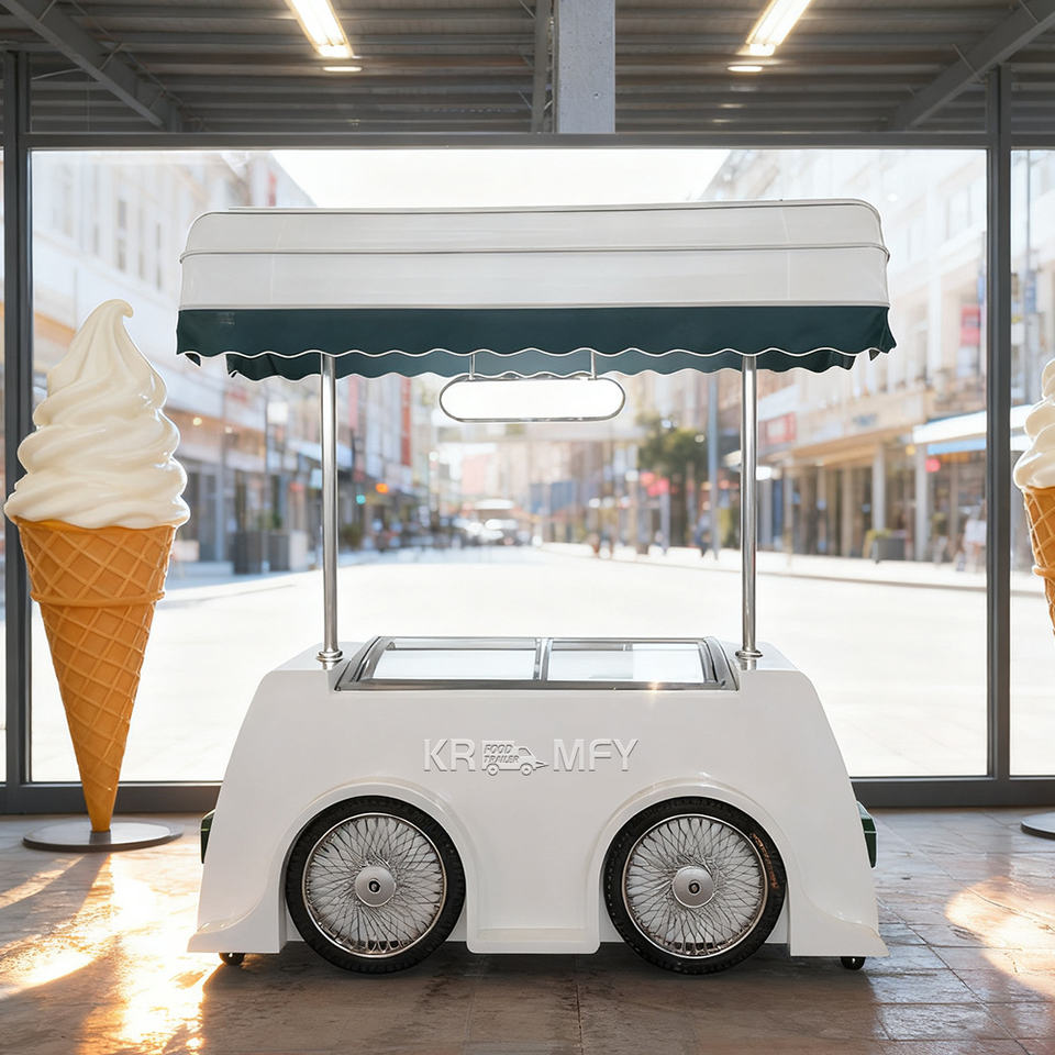 Carrito de Helados Italiano 2025, Diseño OEM, Carrito de Mano para la Calle, Helados Duros, Quiosco de Helados al Aire Libre, Carrito Móvil de Gelato