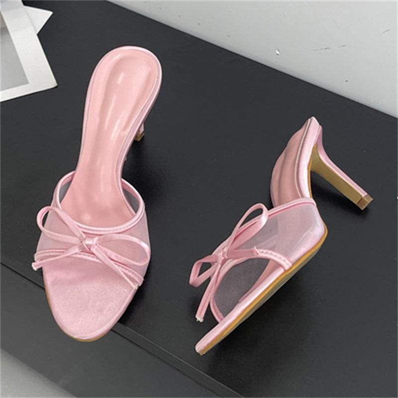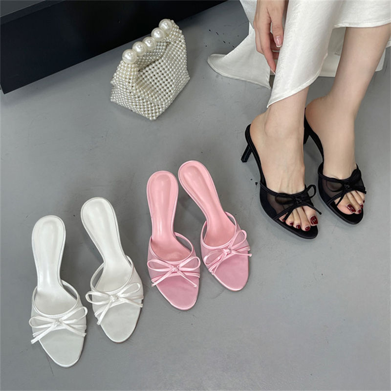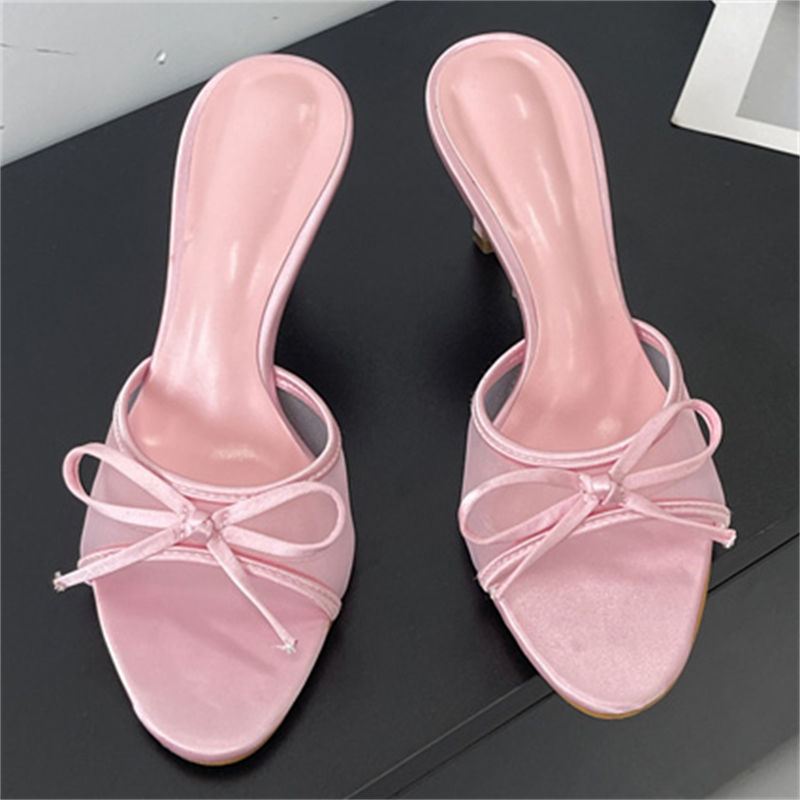 Sandalias de tacón de aguja con punta abierta, antideslizantes, de malla, con lazo, ligeras, de cuero, estilo del sudeste asiático, a la moda 2025