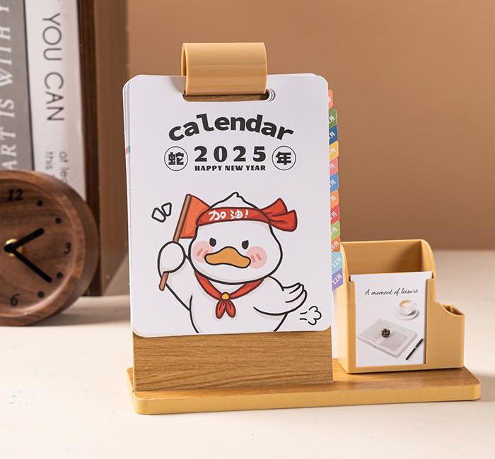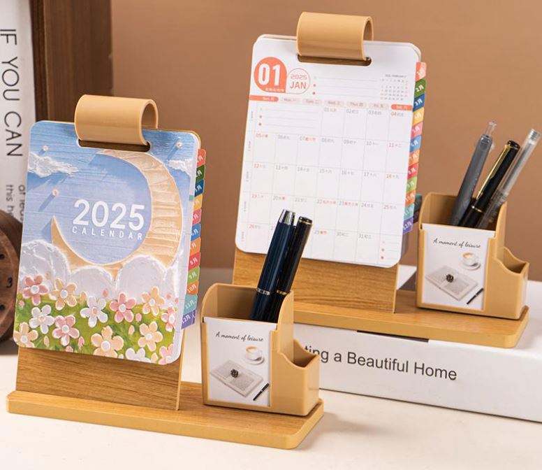 Set de Regalo Empresarial de Plástico 2025 con Impresión en Relieve, Solución Práctica para Escritorio, Calendario de Escritorio con Ranuras para Tarjetas y Portaplumas