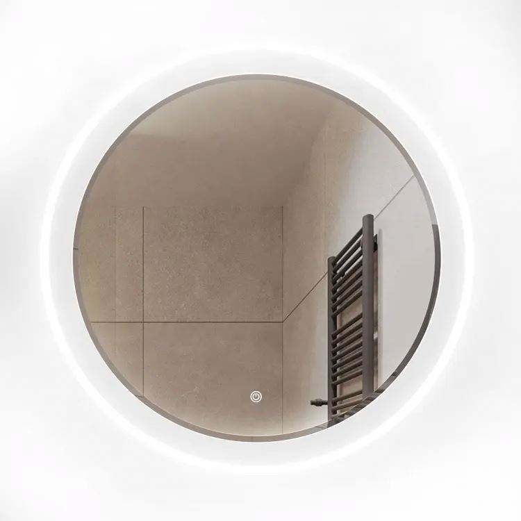 2025 Popular iluminación LED antivaho acrílico montado en la pared espejo de tocador de baño inteligente regulable decoración de baño moderna hoteles