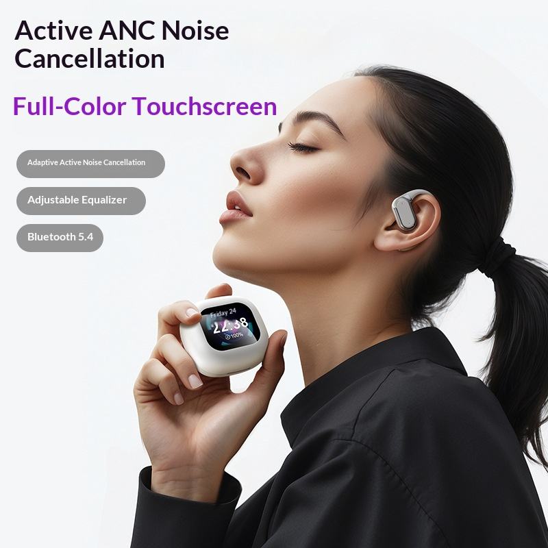Audífonos Bluetooth Q18 2025, Populares, con Diseño de Gancho para la Oreja, Traducción Inteligente por IA, Reducción de Ruido OWS, Pantalla LED a Color Táctil
