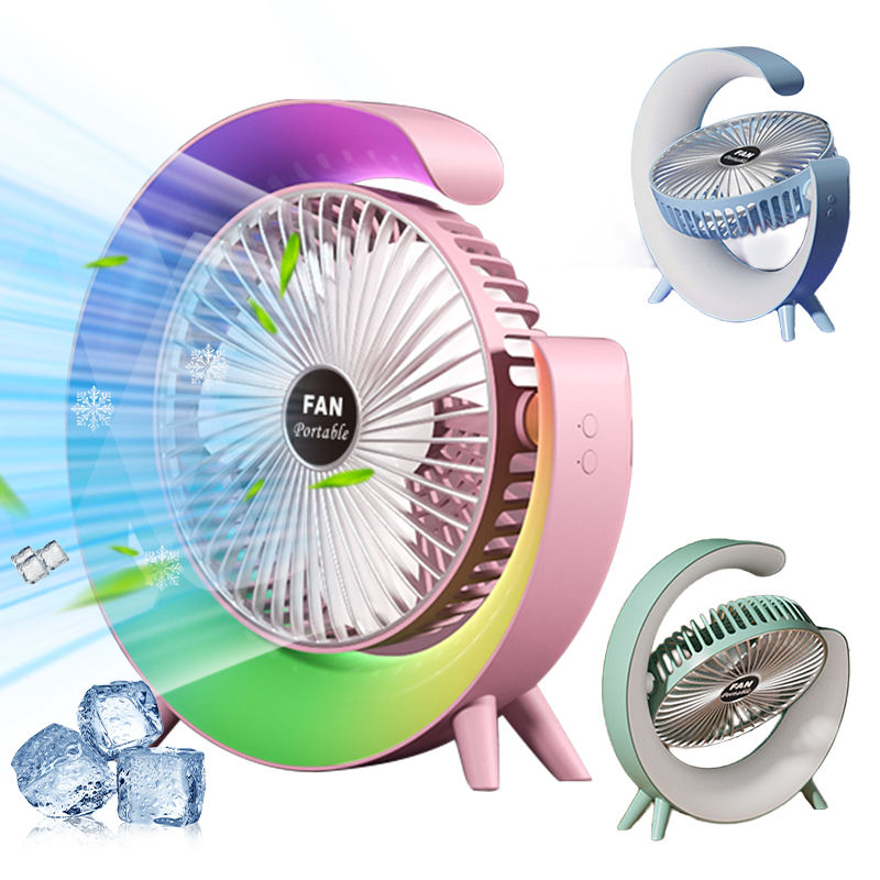 Ventilador de Mesa Oscilante Portátil 2025 con Luz Nocturna de Colores para Habitación y Hogar