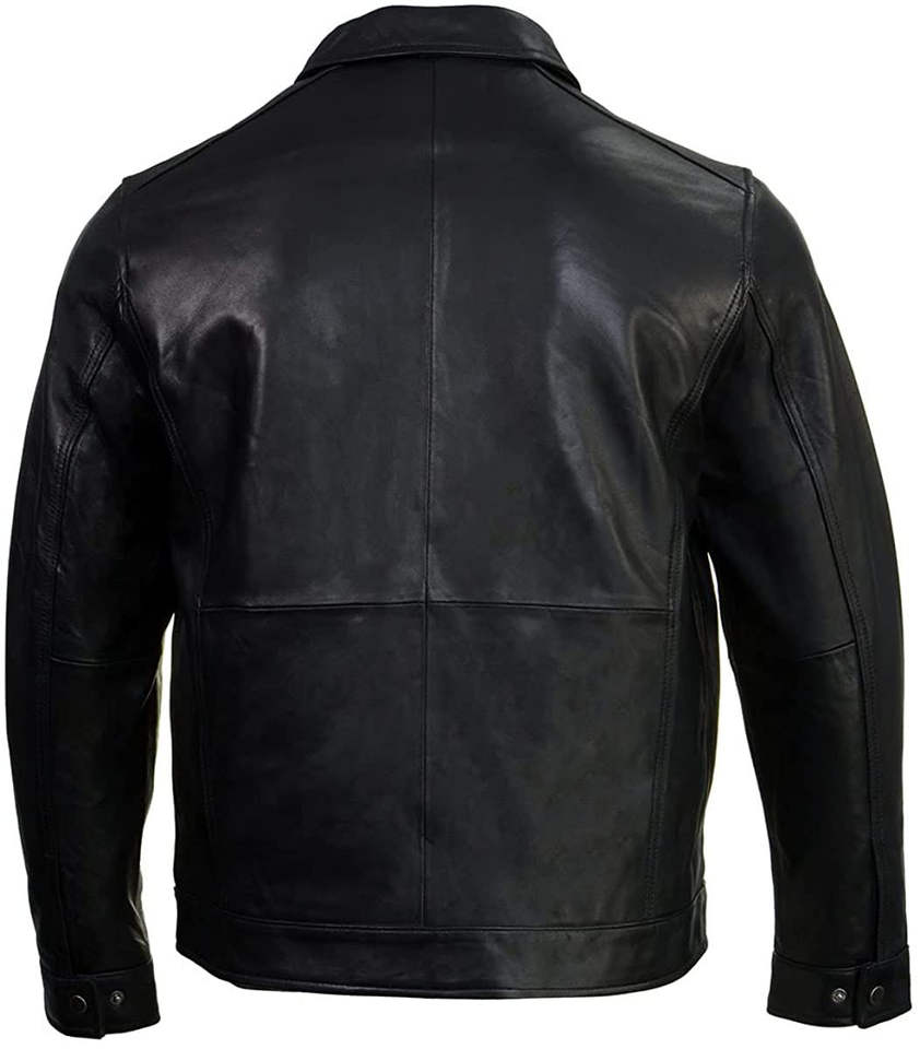 Chaqueta de Cuero de Primera Calidad 2025, Color Negro Sólido, Cuero Genuino de Vaca, Cuello Camisero, Chaqueta de Cuero Extra Grande para Hombre