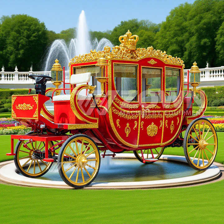 2025 rojo Navidad carruajes tirados por caballos Royal Horse Carriage lujo 4 ruedas turismo eléctrico lujoso Royal Cart