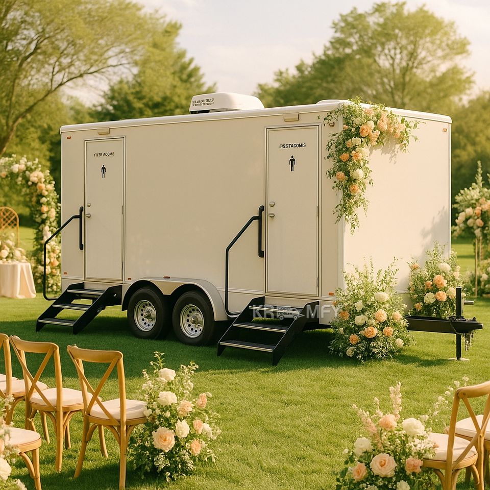 2025 Inodoro de alquiler Baño personalizado portátil Precio 2 estaciones Baño Remolque Costo de alquiler
