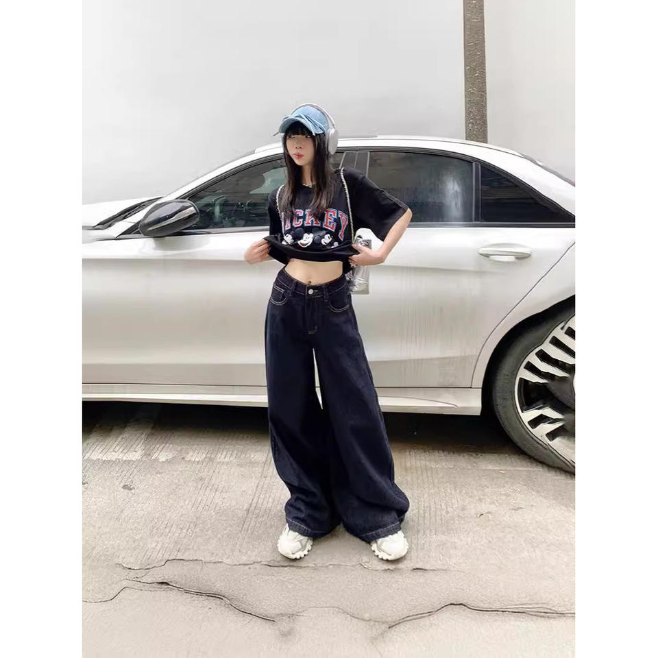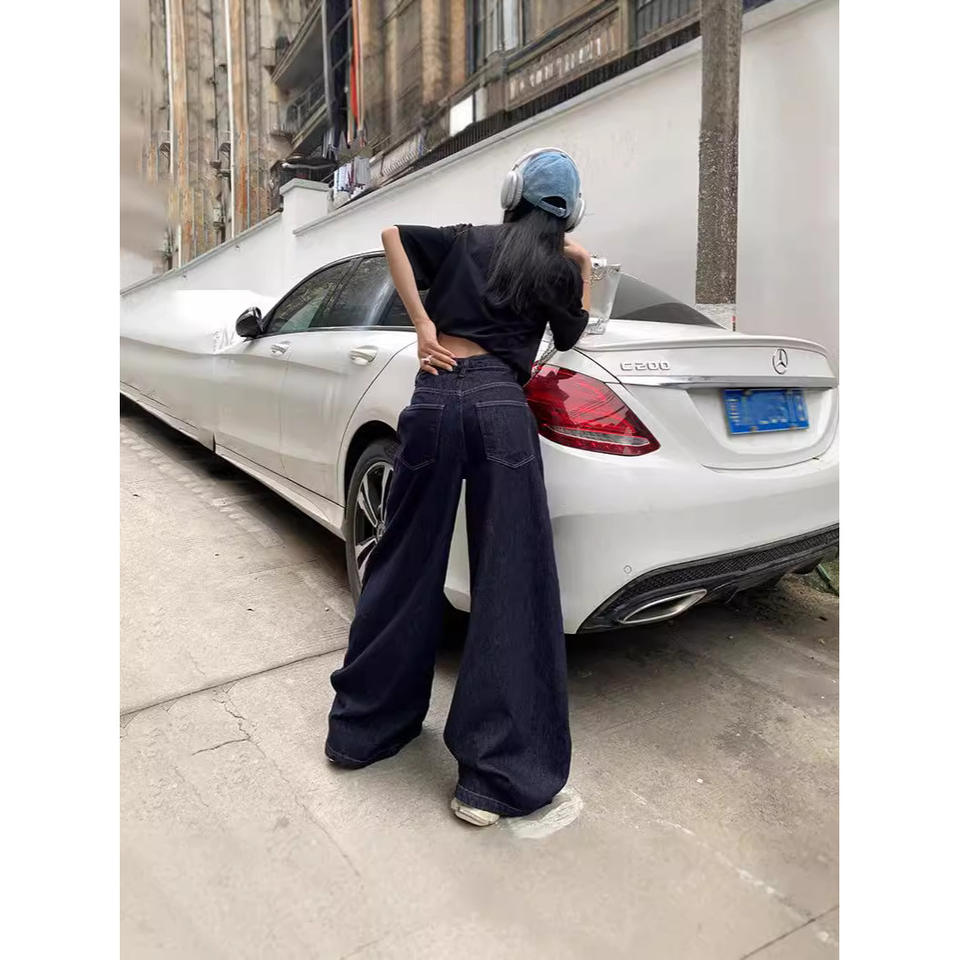 2025 Retro suelto americano recto de cintura alta pantalones de mezclilla de pierna ancha versátil Delgado drapeado trapeador de moda con grosor fino