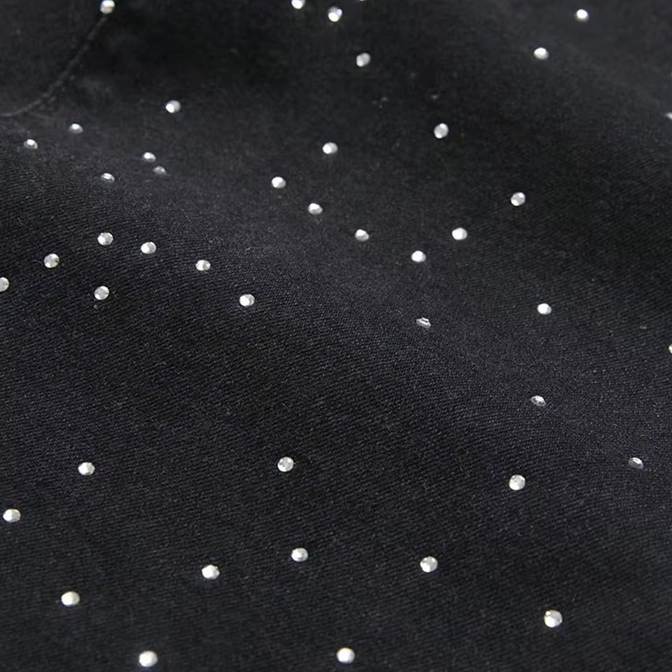 Shorts de Mezclilla con Pedrería 2025 para Hombre, Color y Talla Personalizados, Estilo Hip Hop Retro, Negro Holgado, Precio Económico