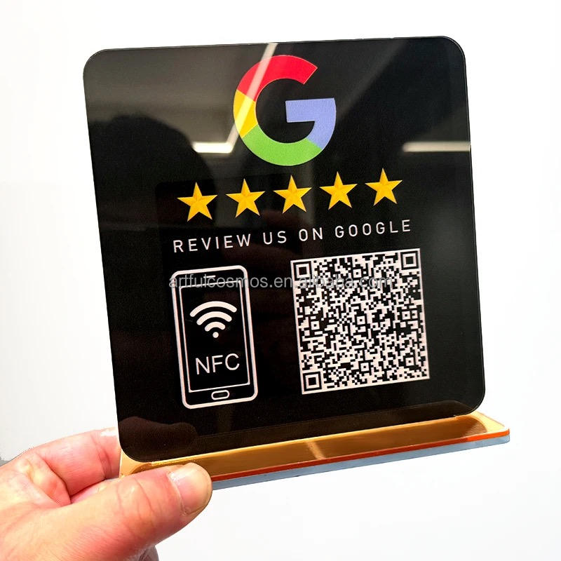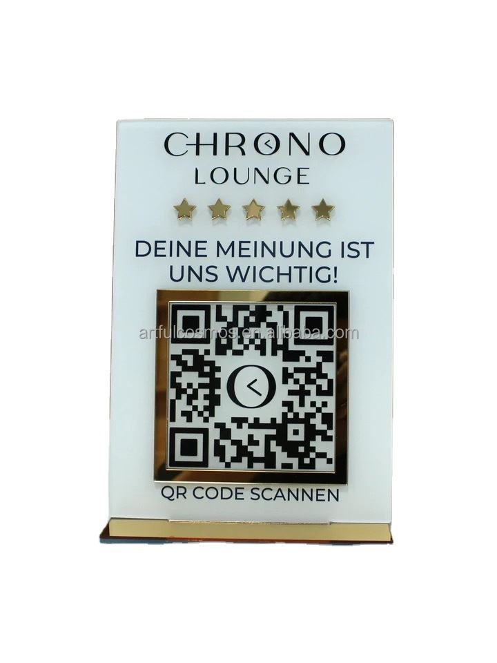 Soporte de código QR de acrílico para encimera Simple de tamaño pequeño 2025, soporte de exhibición de código QR para pago, soporte de señal de código QR para redes sociales