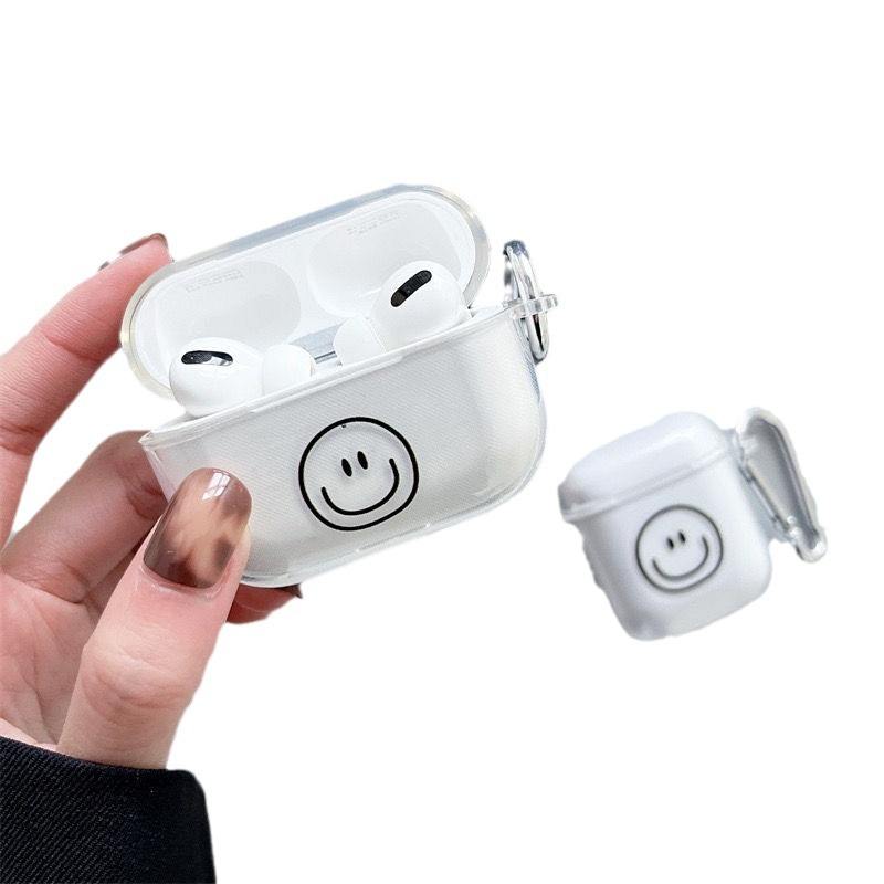 Funda protectora para auriculares inalámbricos de TPU suave transparente con diseño de cara sonriente 2025 para Apple Airpods 4 ANC