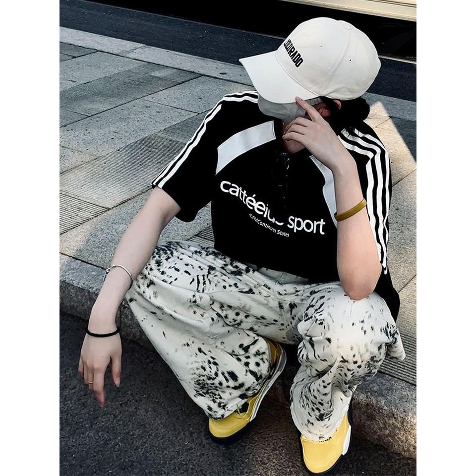 2025 colección primavera otoño americano Retro estampado de leopardo Jeans sueltos Casual recto pierna ancha cintura alta transpirable
