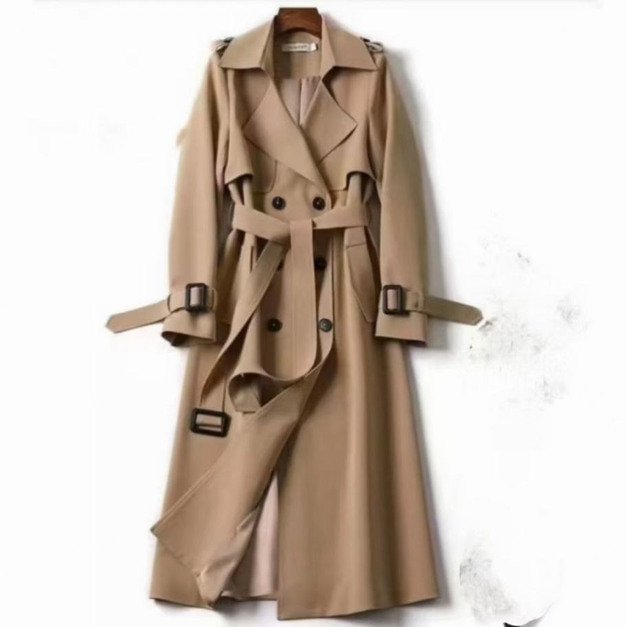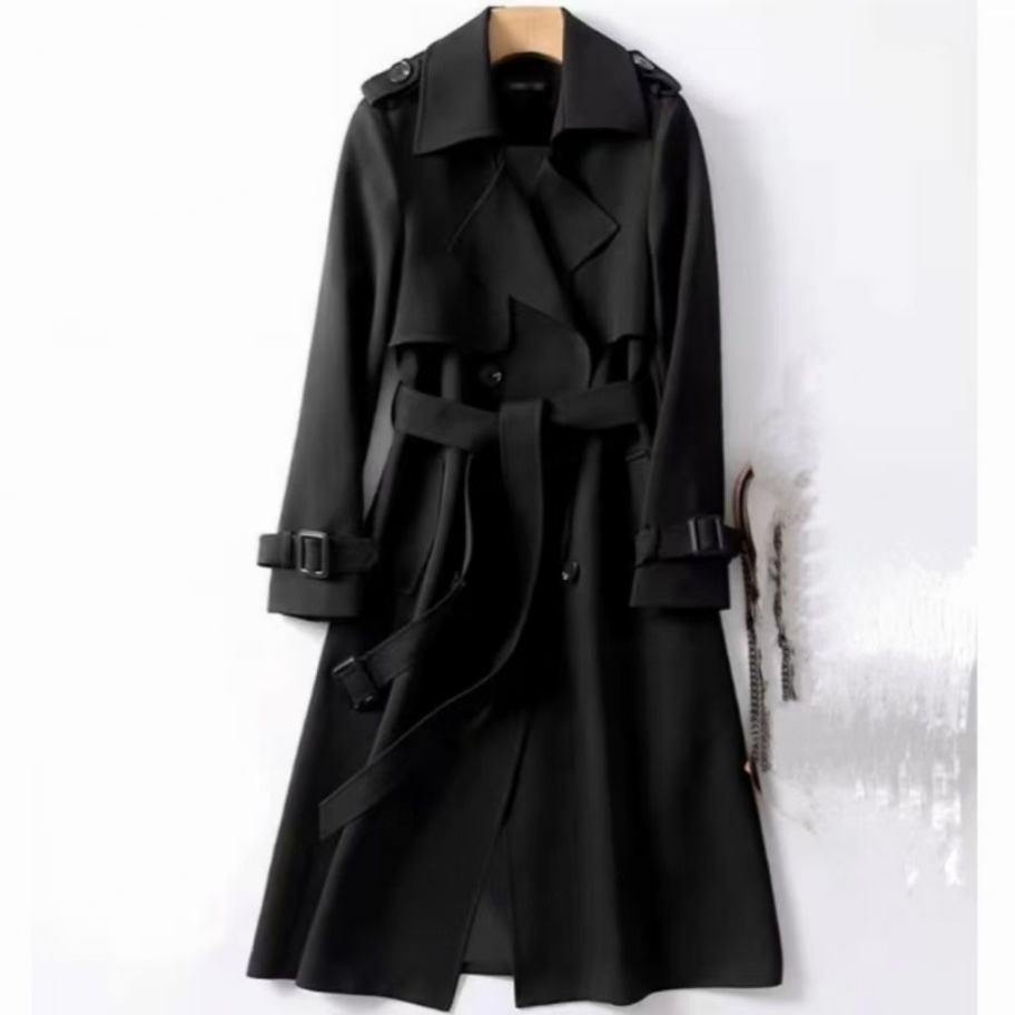 Abrigo Largo Impermeable y Cortavientos de Tela Tejida Estilo Coreano para Mujer, Primavera-Otoño 2025