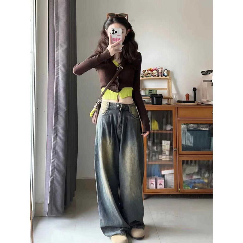 2025 primavera otoño Rock gris lavado Retro recto suelto Delgado pierna ancha American High Street Jeans para mujeres