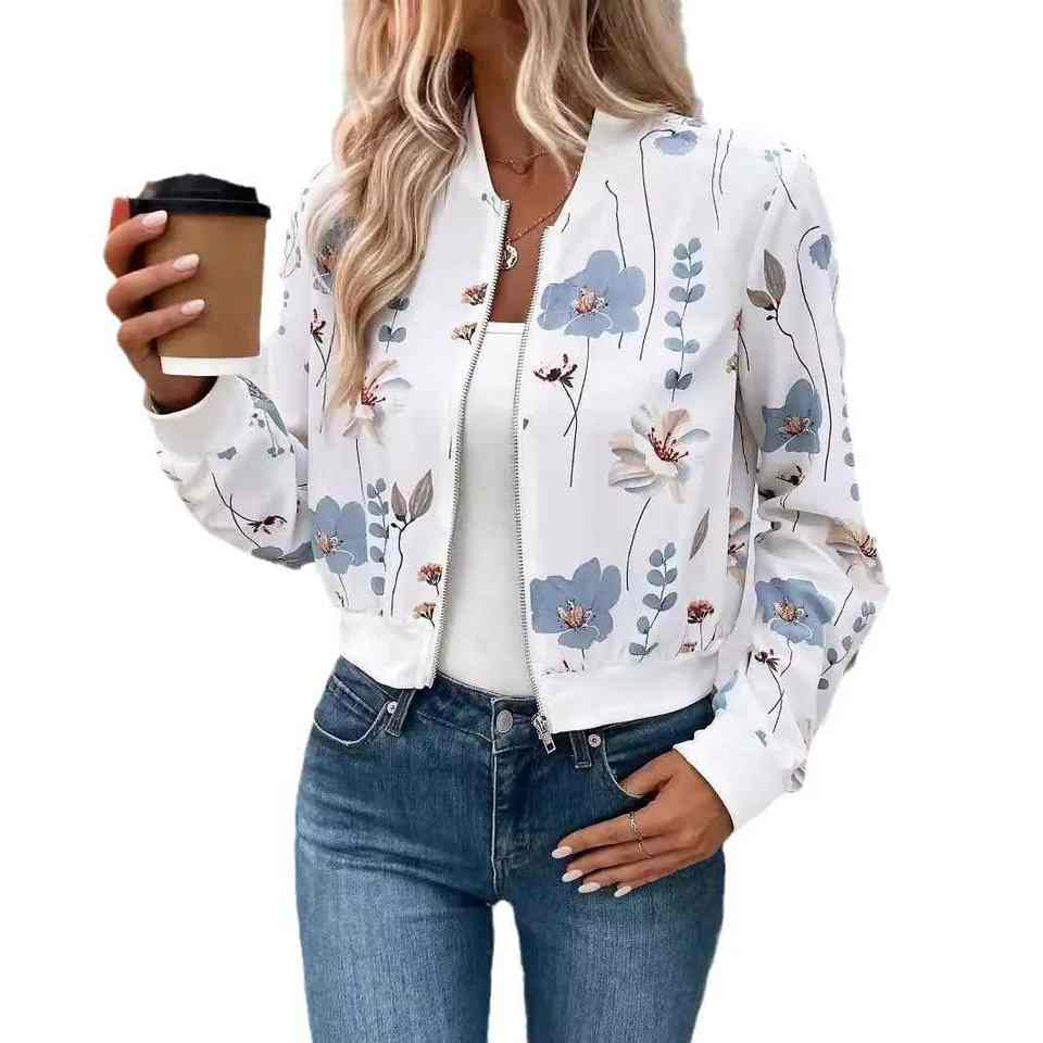 Chaqueta informal de cuero genuino para mujer elegante de primavera 2025, manga larga, cremallera, estampado Floral, concha de lana teñida Lisa para invierno