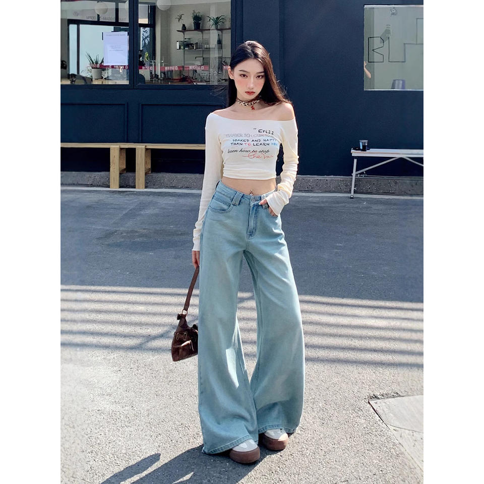 Pantalones Vaqueros de Pierna Ancha y Cintura Alta en Lyocell Azul Claro, Primavera 2025, Talla XL, Versión Ajustada