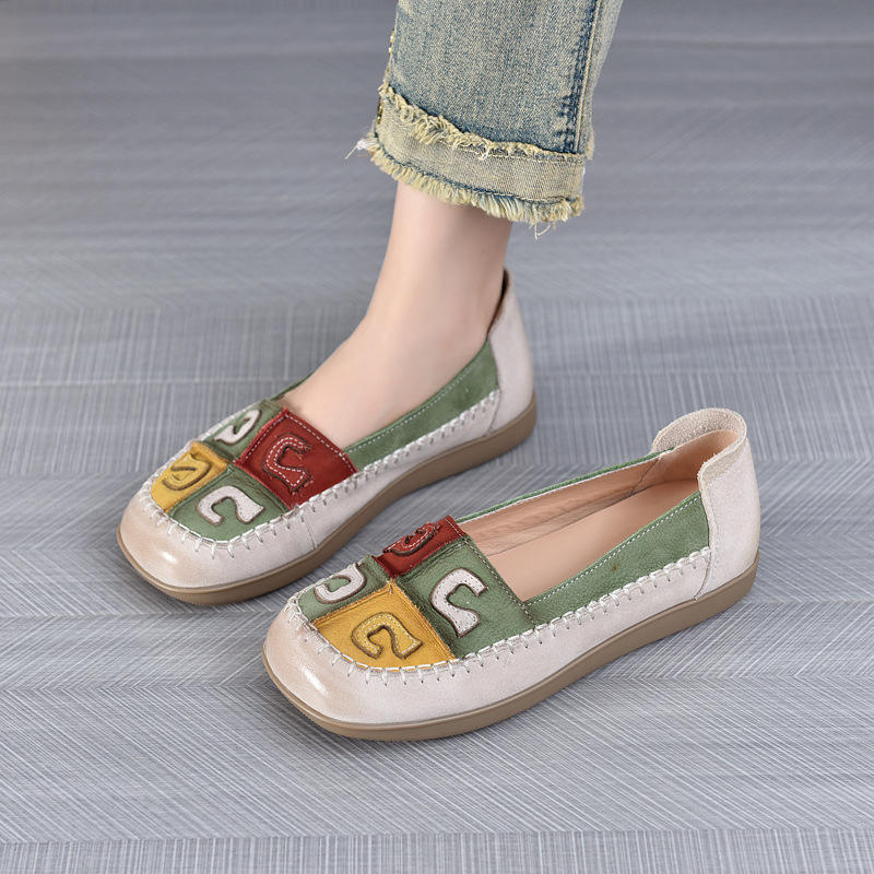 Mocasines Retro Planos de Piel de Vacuno de Primera Capa para Mujer, Primavera 2025, Transpirables, con Suela Suave, Color Marrón/Beige, para el Día de la Madre