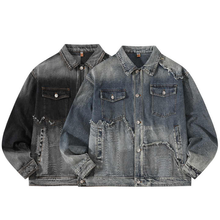 Chaqueta Vaquera de Hombre Estilo Hip Hop Retro con Empalmes, Moda Americana, Logotipo Frontal, Nueva Colección Primavera 2026