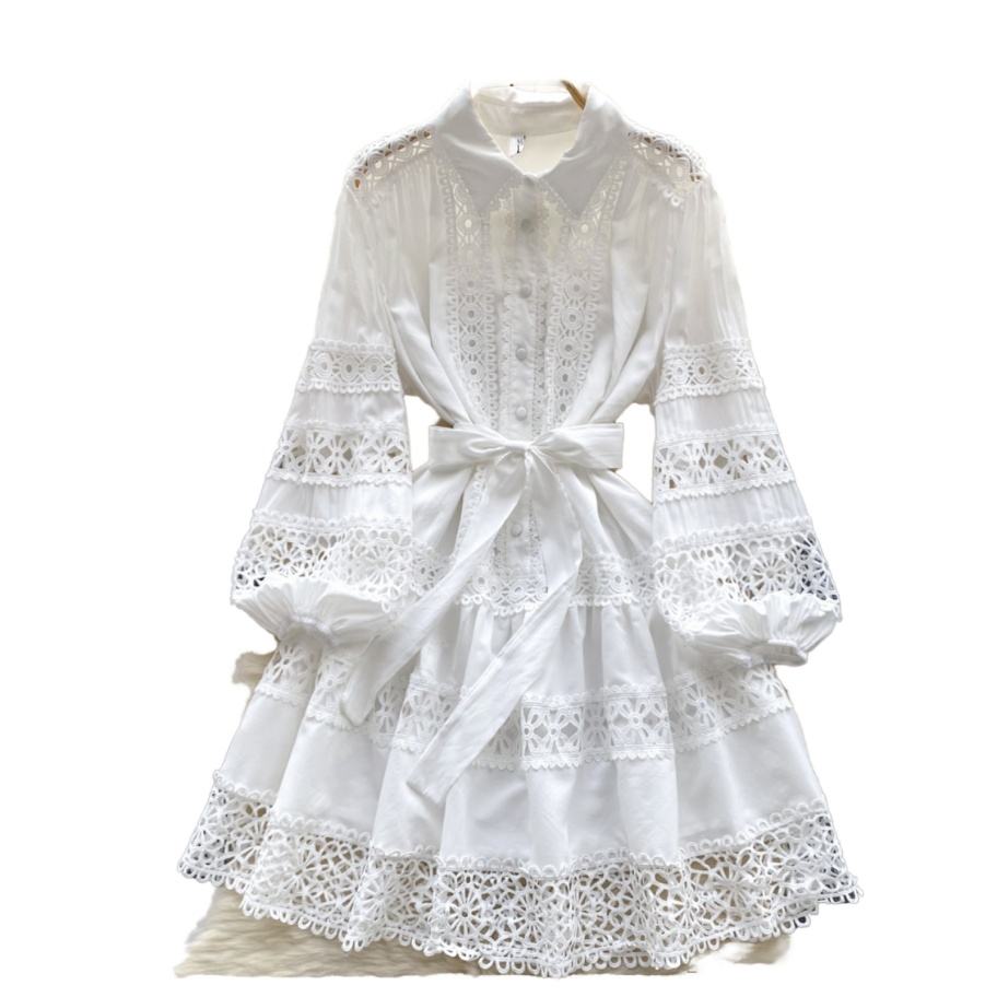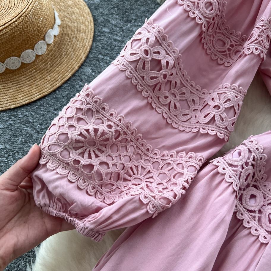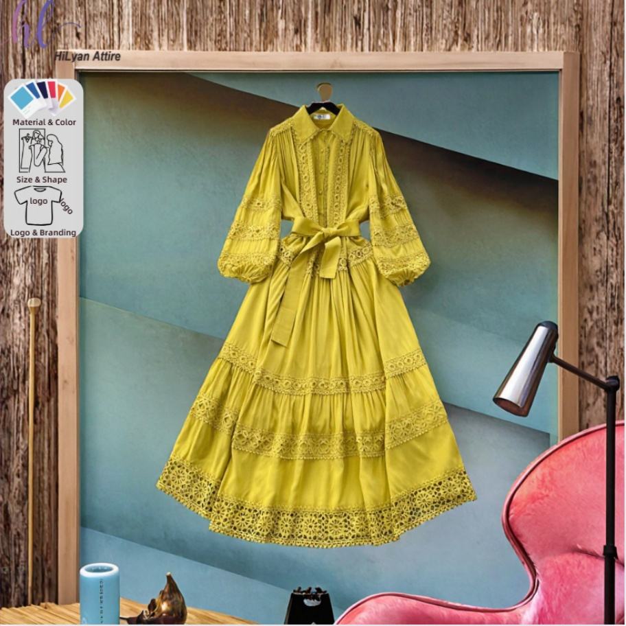 Vestidos de Mujer Estilo Retro Primavera 2025, Elegantes, con Mangas Largas Tipo Linterna, Decoración de Botones, Cintura Impero, para Otoño e Invierno