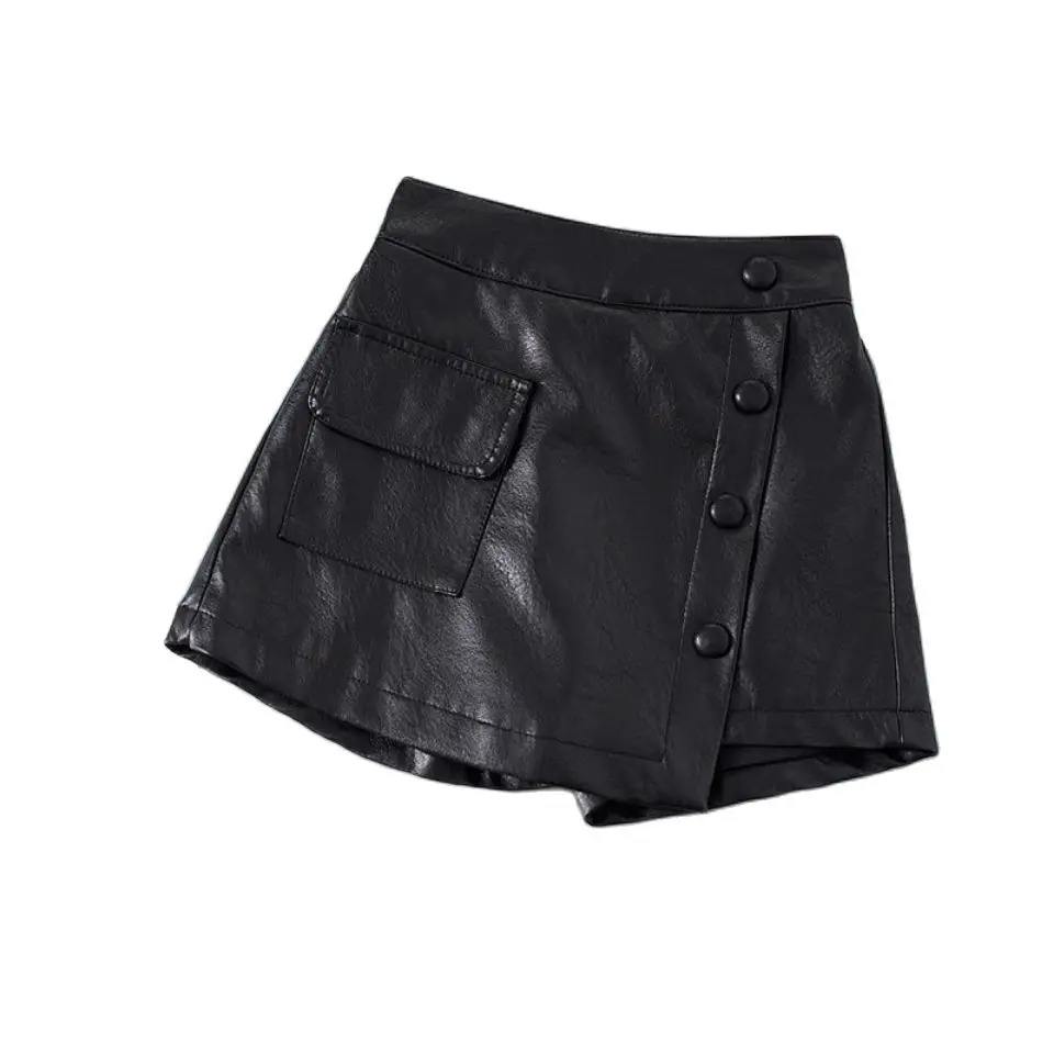 2025 Primavera Verano otoño niñas Pu cuero moda Pantalones cortos con falda