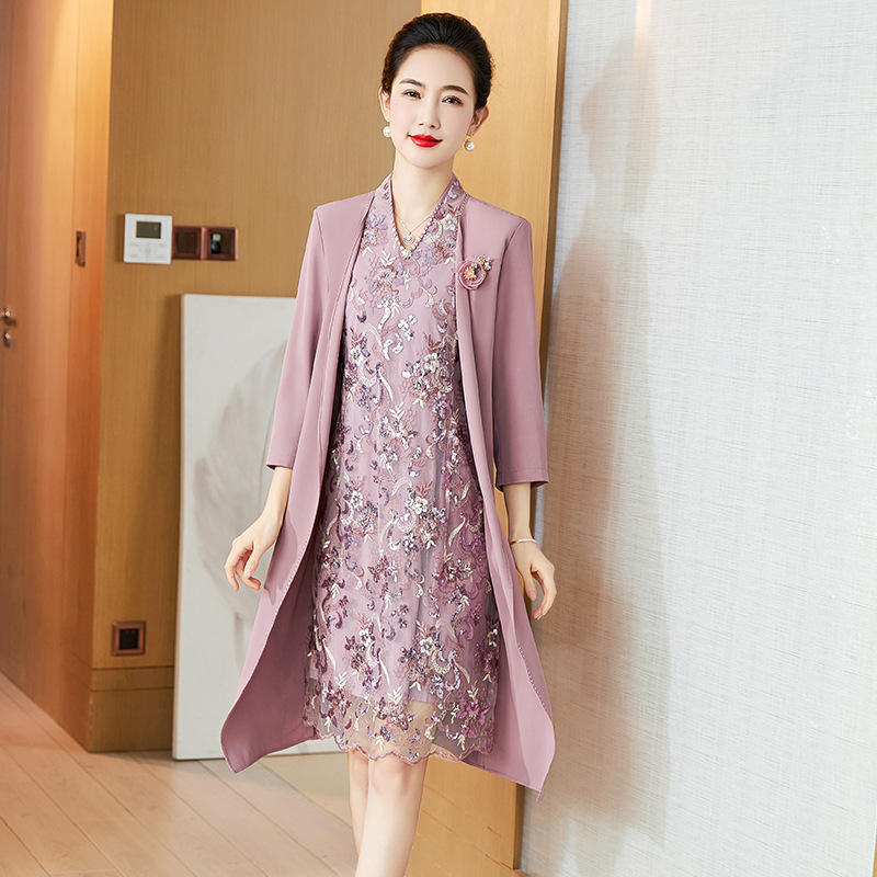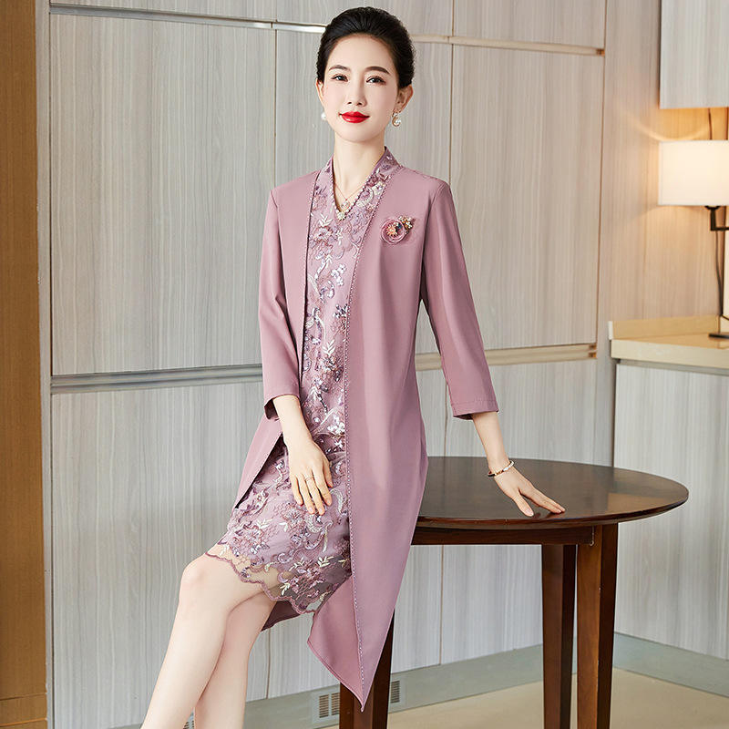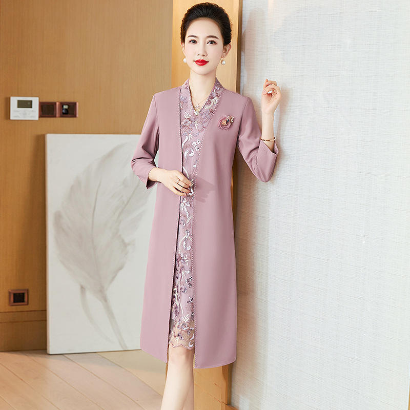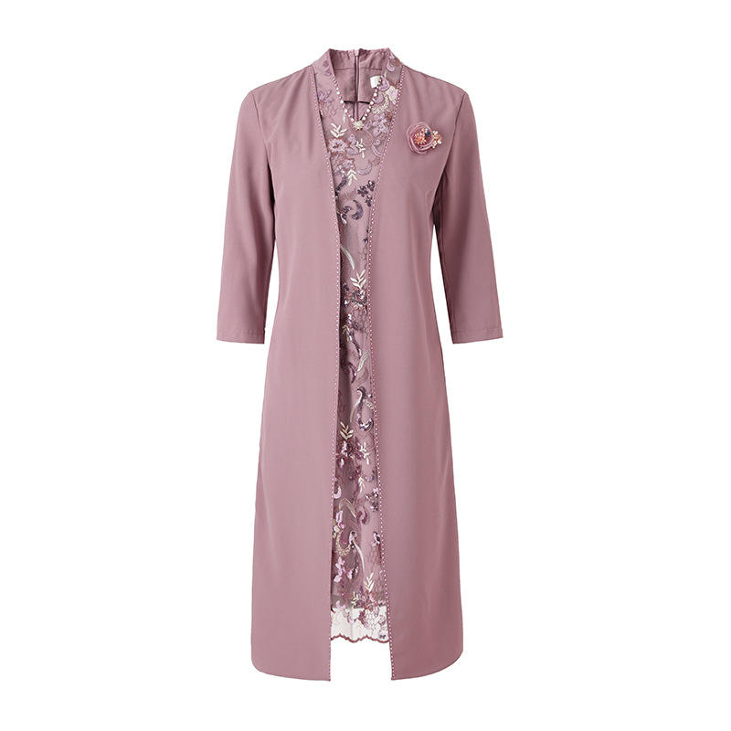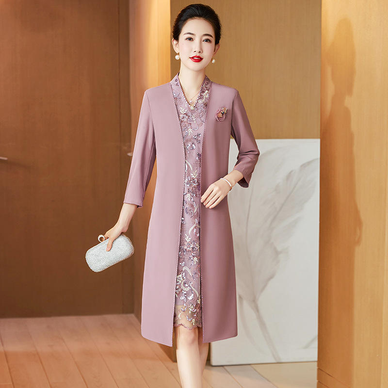 Colección Primavera Verano 2025, Nuevo Vestido Casual de Estilo Occidental Noble, Cuello en V, Manga Larga, Largo hasta la Rodilla, Natural, Lavable