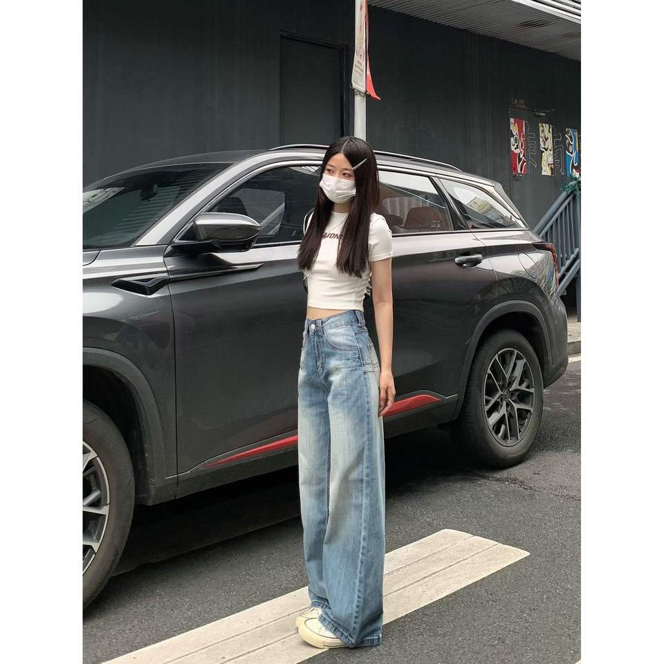 2025 primavera y otoño Retro lavado pantalones vaqueros de pierna ancha para mujeres de cintura alta transpirable suelto adelgazamiento hasta el suelo Pantalones