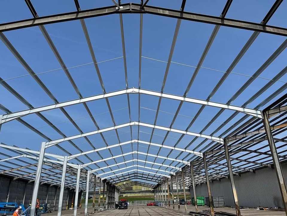 2025 Estructura de acero Edificio de oficinas Taller estructura de acero restablecer la acería en Dengie Feeds preparación para trabajos de revestimiento