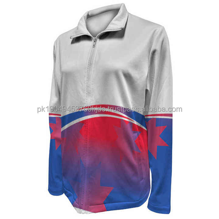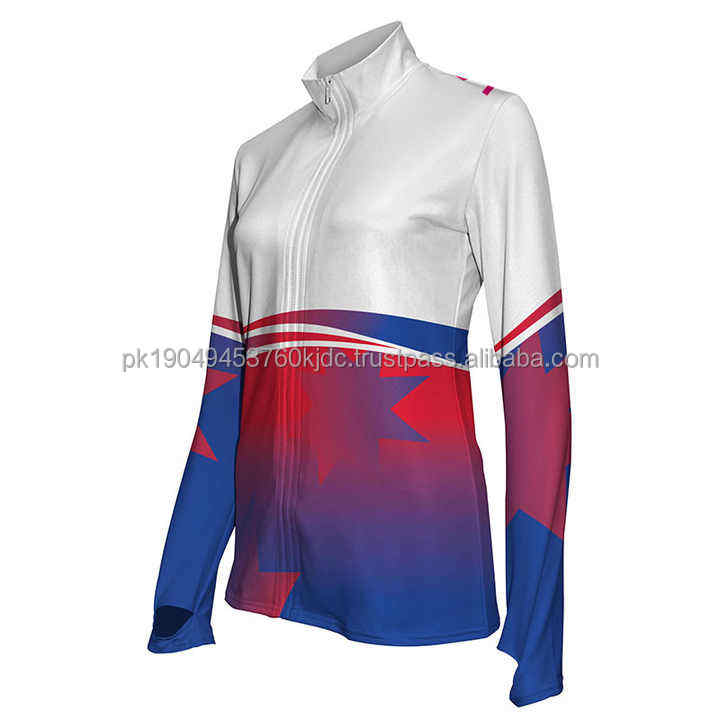 Chaqueta de equipo de baile de porristas de poliéster para mujer con sublimación 2025, diseño de calentamiento para adultos hecho de material de nailon duradero