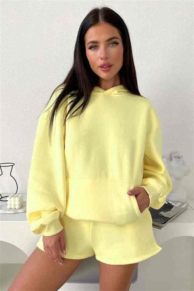 Conjunto de Dos Piezas de Lona Sólida Personalizada de Verano 2025, Ropa de Mujer, Sudadera, Conjuntos Deportivos, Sudadera con Capucha y Pantalones Cortos