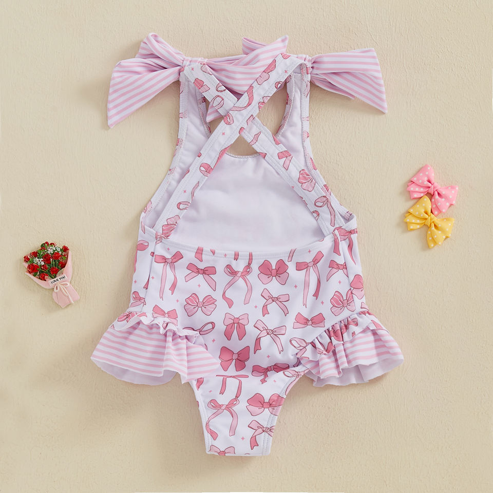 2025 verano niñas traje de baño de una pieza niños Bikini Tankini traje de baño espalda cruzada Rosa Coquette arco Floral bebé niñas traje de baño