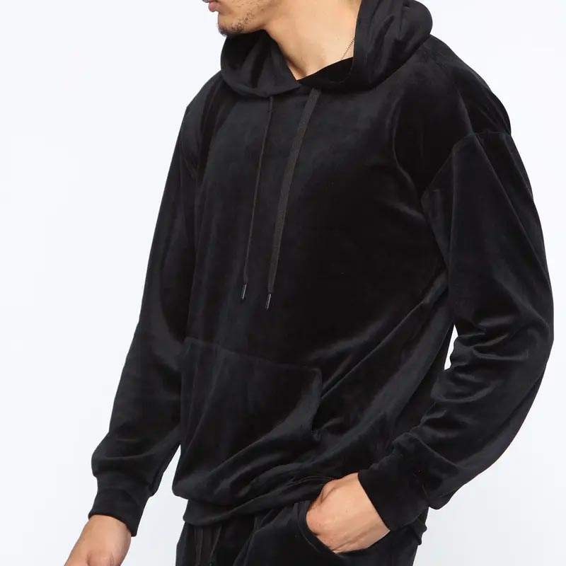 2025 diseño superior al por mayor personalizado impreso sólido terciopelo chándal hombres en blanco negro sudaderas con capucha ropa Unisex 100% algodón