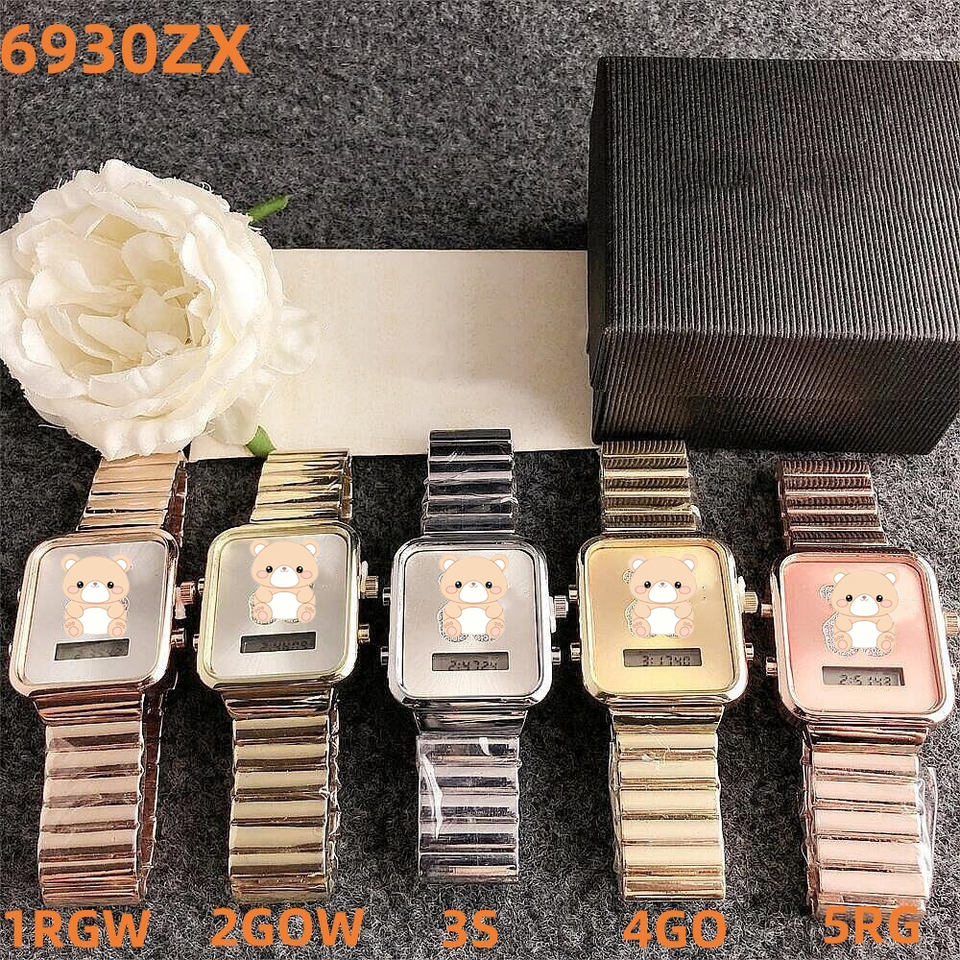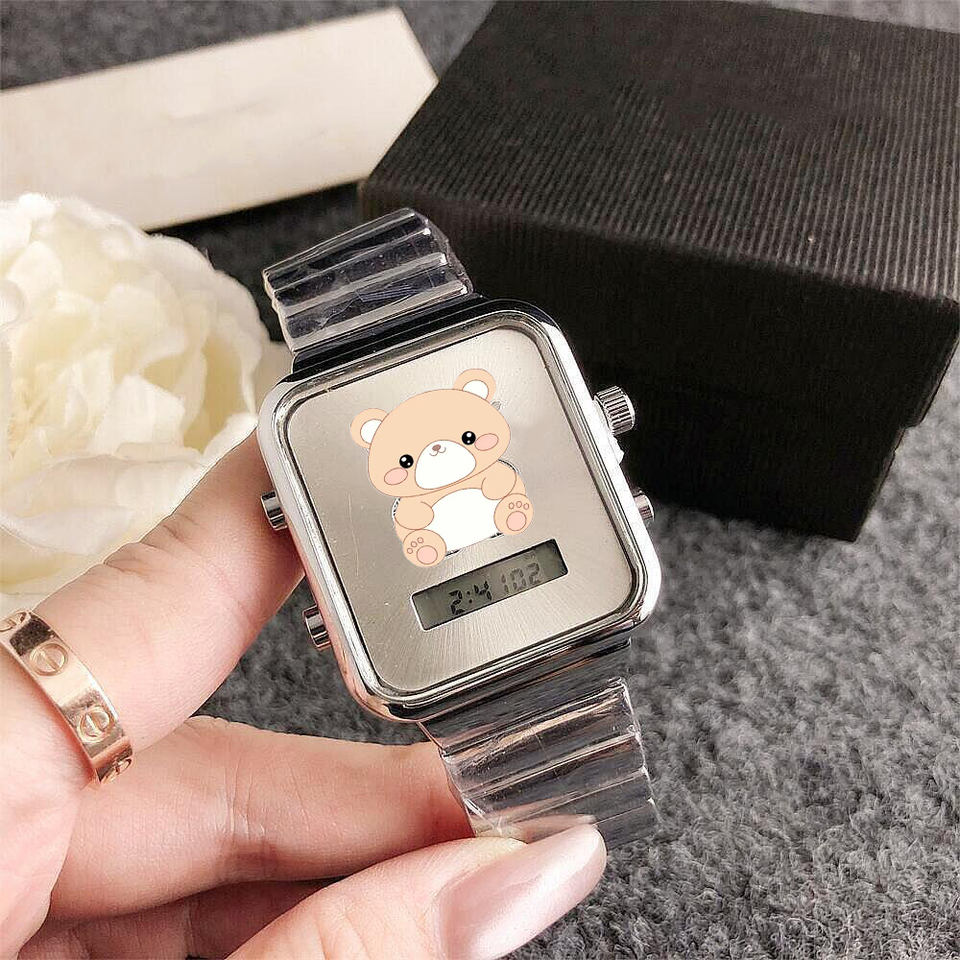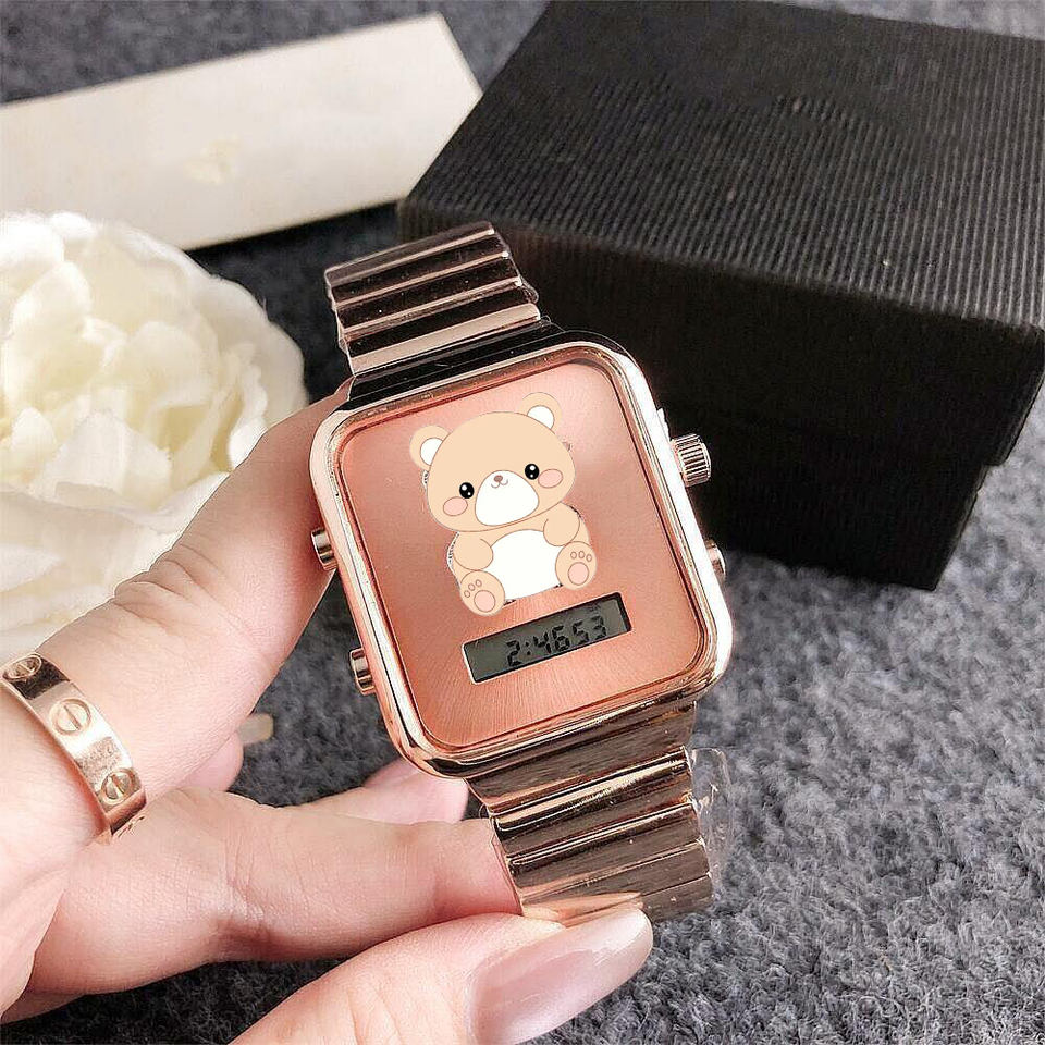 2025 Nuevo reloj de cuarzo para mujer de acero inoxidable, diseño sencillo con osito y incrustaciones de strass