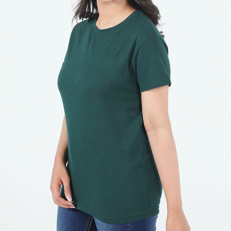 Camiseta en blanco verde bosque de tendencia 2025, Camiseta de cuello redondo hecha de algodón puro 100% para mujer, ropa de calle cómoda y al por mayor hecha a medida