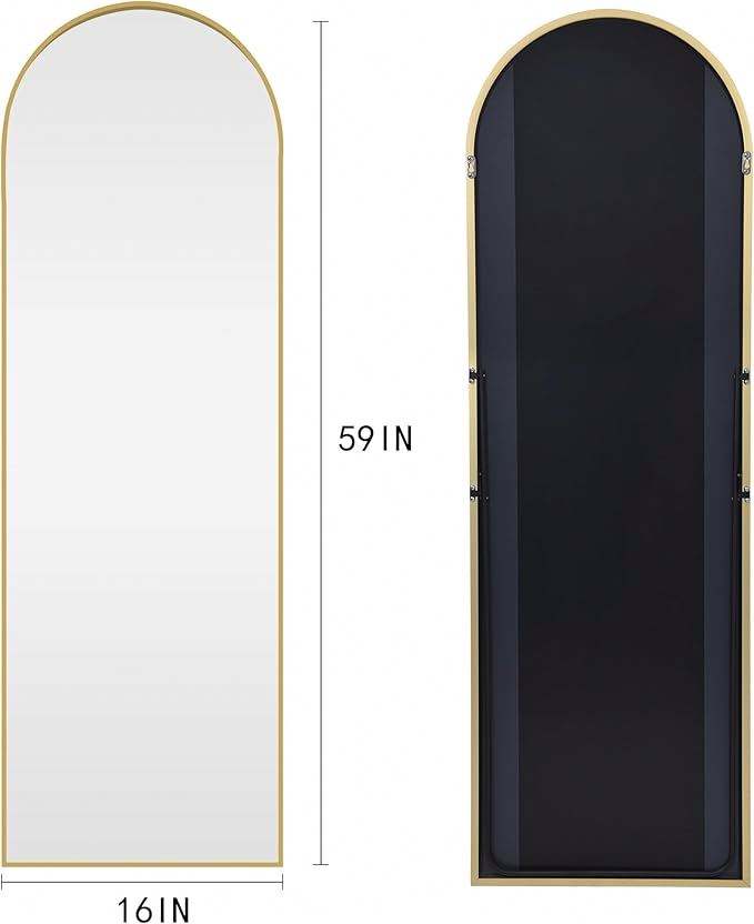 Espejo de pared de longitud completa con acabado dorado y marco de aluminio personalizado de tendencia 2025 para dormitorio, sala de estar, espejo de suelo con arco de pie
