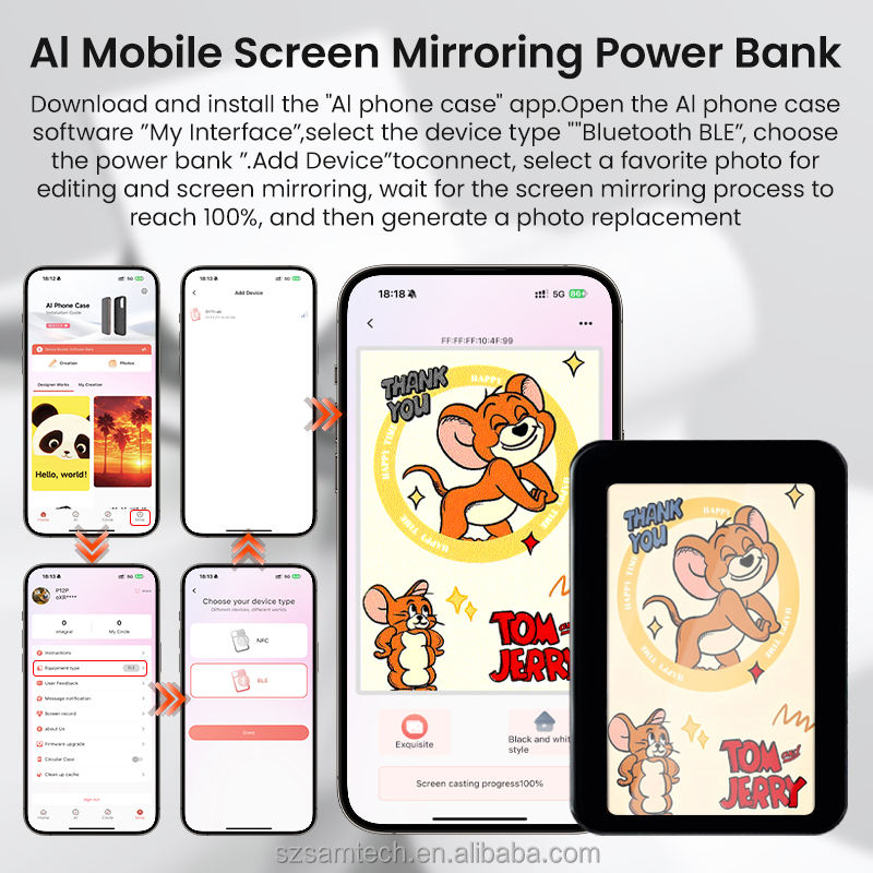 Banco de Energía Ultrafino de 15W, Resistente al Agua, con Carga Inalámbrica Magnética, Proyección de Pantalla Inteligente con Tinta Inalámbrica HD AI, Tendencia 2025