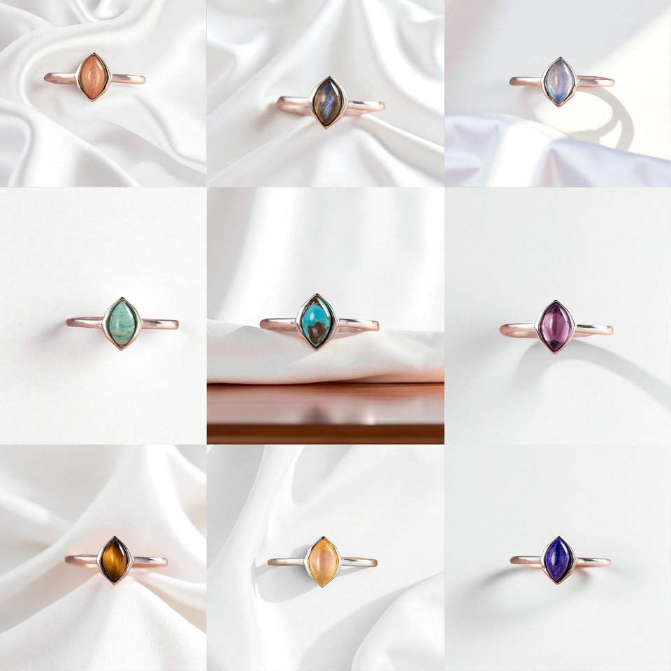 2025 tendencia nueva llegada 925 anillo de piedra solar Marquesa de plata esterlina banda recta suave, joyería a granel al por mayor para mujeres