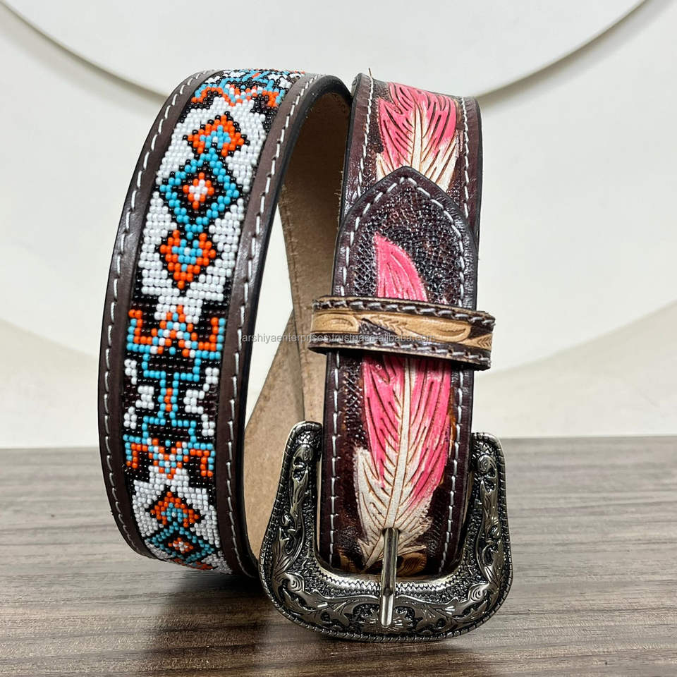 Product name:Hand Tooled Leather Beaded Pin Buckle Belt