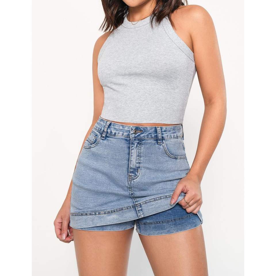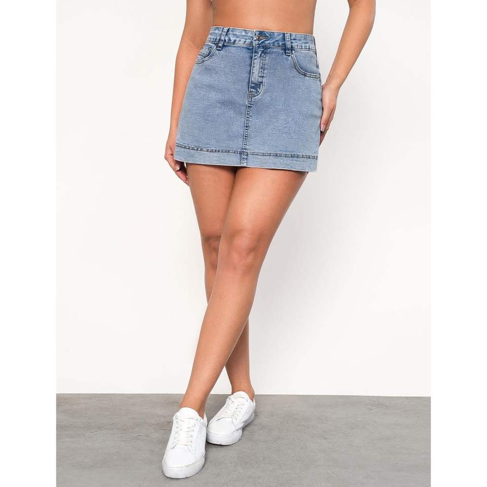 2025 Trendy Y2K Falda vaquera elástica de cintura alta para mujer Mini Country Concert Style Straight Jean Shorts