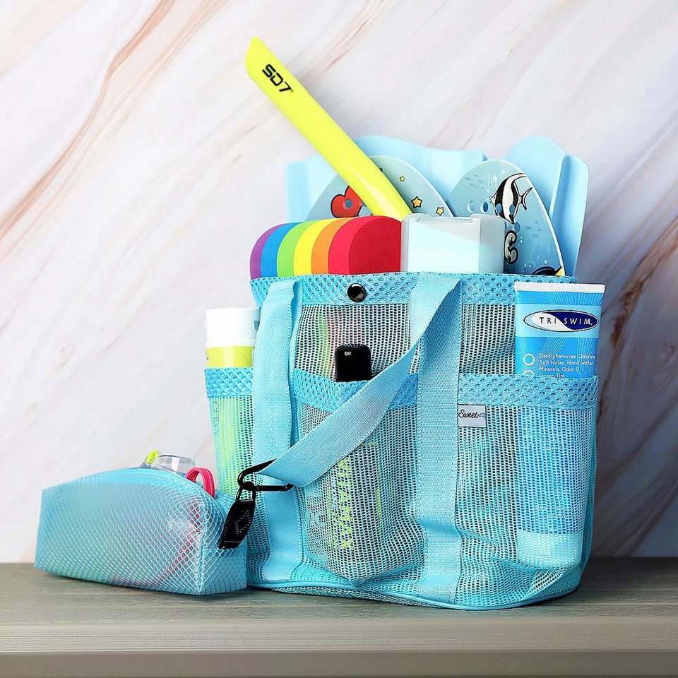 Bolsa de Compras de Malla Azul Personalizable Unisex 2025 con Logotipo Impreso a Color, Bolsas de Playa de Verano de Malla de Poliéster Negras