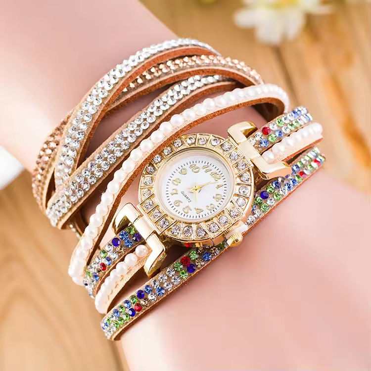 Reloj de mujer de diseño Vintage 2025, reloj de cuarzo con pulsera trenzada con remaches de cristal