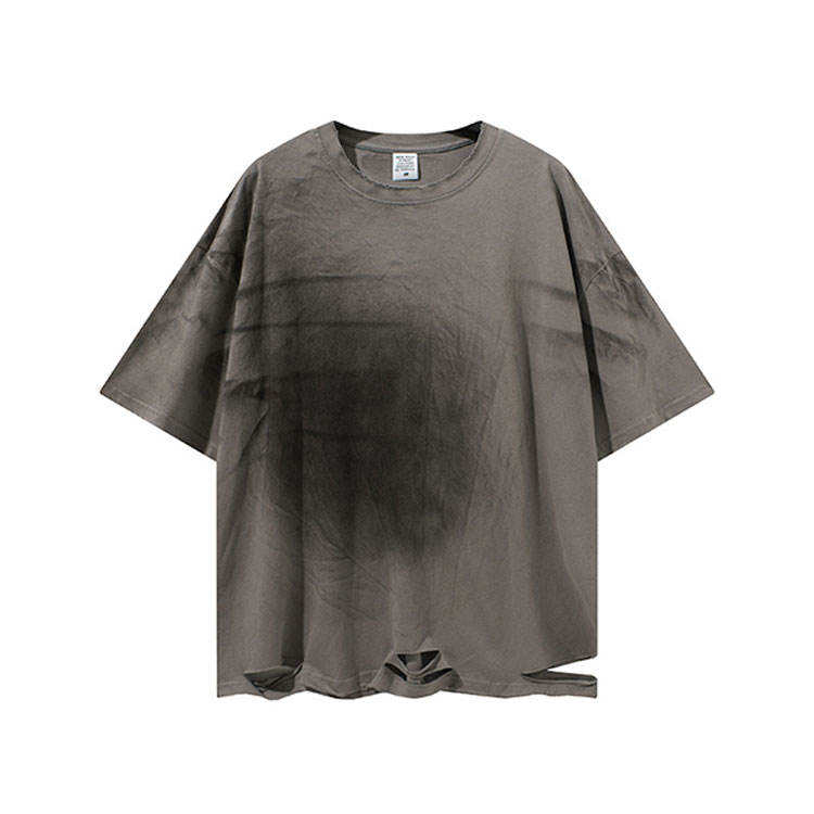 2025 venta al por mayor 100% algodón 180 Gsm peso pesado pintura en aerosol camisetas personalizadas Vintage ropa de calle de gran tamaño hombres lavado con ácido camiseta