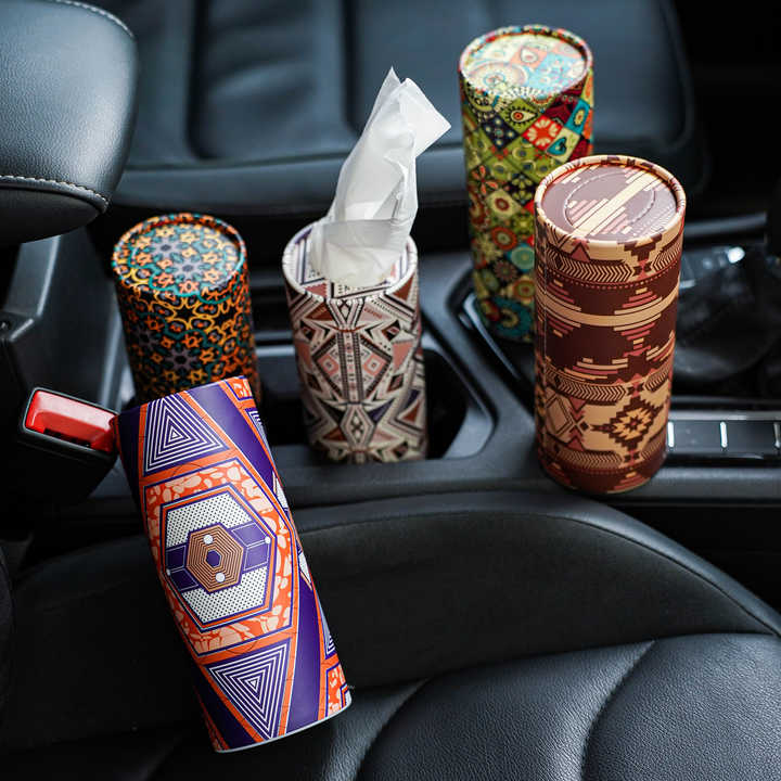 2025 caja de pañuelos de cilindro de soporte de coche de tejido Natural al por mayor para niñas tejidos faciales para coches