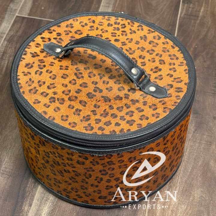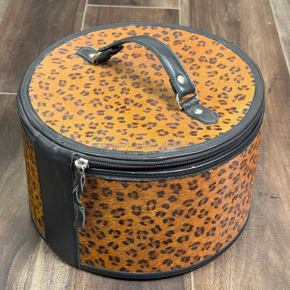 Nombre del Producto:Estuche redondo para joyas de piel de vaca con estampado de leopardo