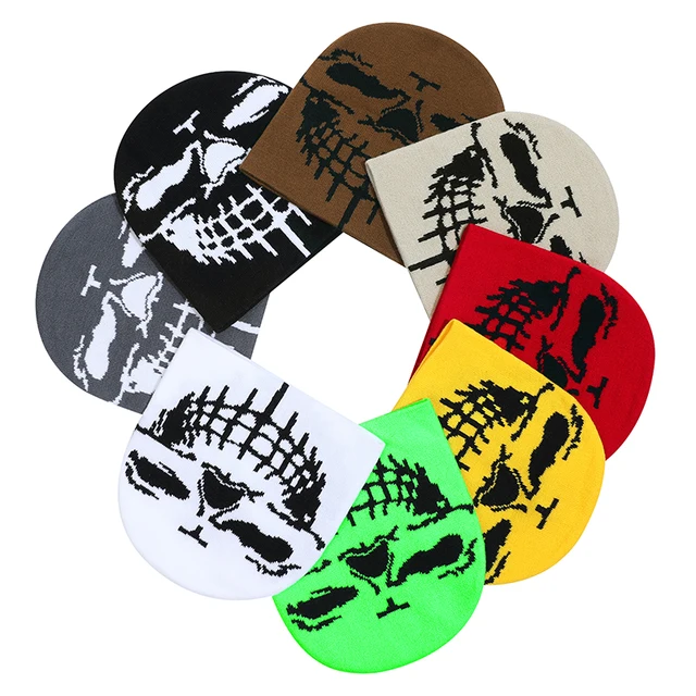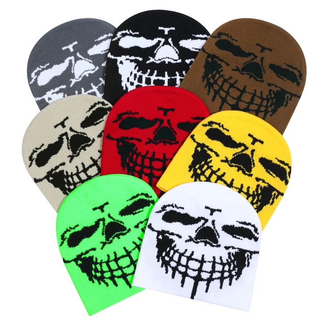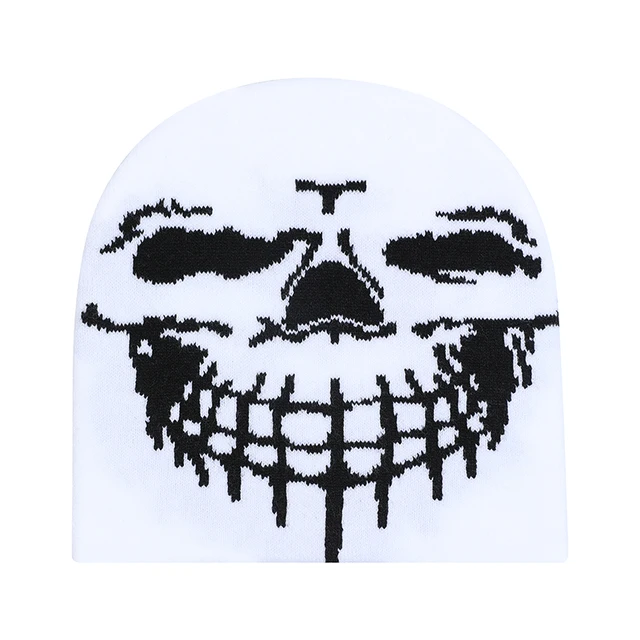 Gorro de piel de melón con cúpula de Jacquard cálido para invierno 2025, nuevo estilo callejero Hip Hop de calavera de punto para hombres y mujeres para viajes