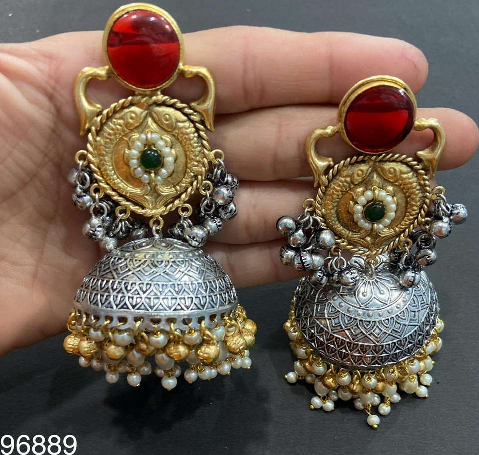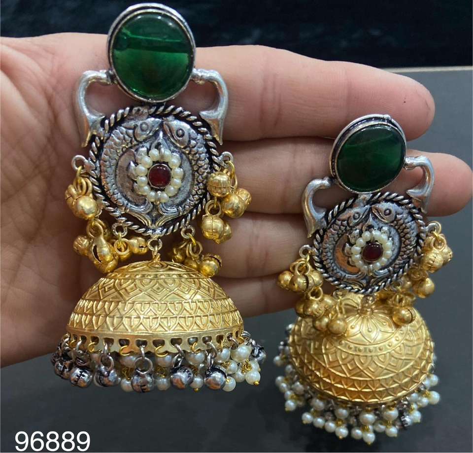 german silver gold plated jhumka earrings-41Número de Modelo