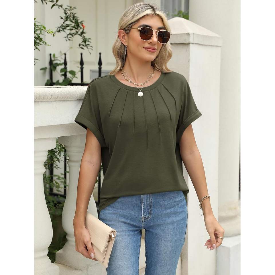 2025 camisetas de verano de gran tamaño verde militar para mujer, camisetas de negocios informales para verano